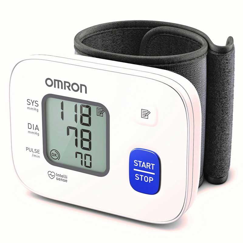 OMRON RS2 automātisks asinsspiediena mērītājs uz apakšdelma.