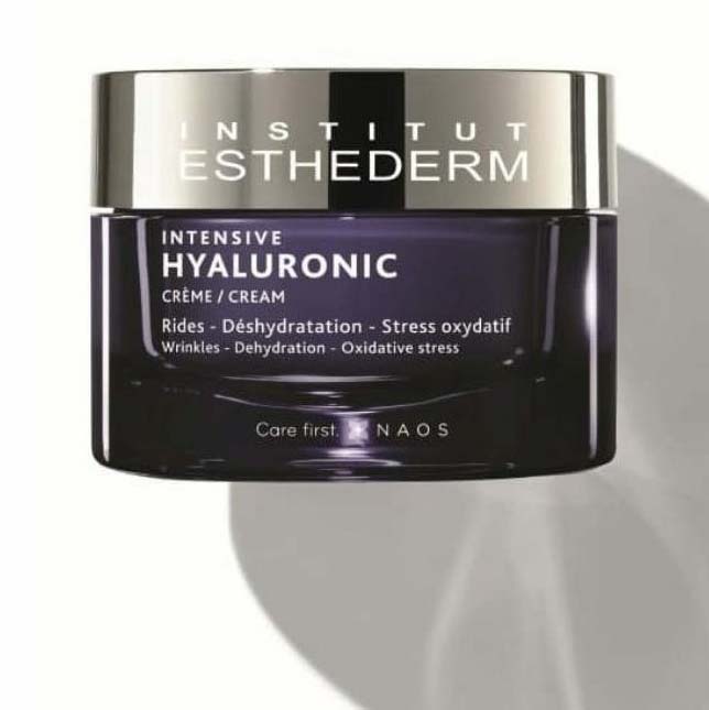 Hialuronskābe – šī molekula ir dabiski atrodama mūsu ķermenī un augstu novērtēta tās izcilo bioloģisko īpašību dēļ. Tā darbojas kā ādas ūdens krātuve, nodrošinot tās jauneklību. Lai sasniegtu maksimālo efektu, Institut Esthederm Intensive Hialuronskābes krēms kombinē trīs hialuronskābes molekulu veidus.