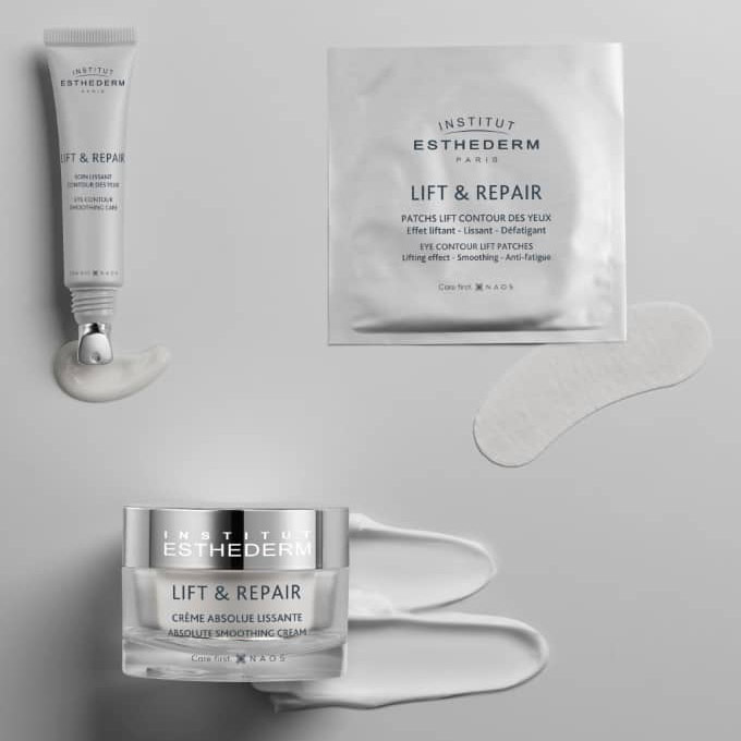 - Liftinga efekts – Institut Esthederm Lift&Repair absolūti izlīdzinošs krēms nostiprina sejas ovālu un izlīdzina grumbiņas.