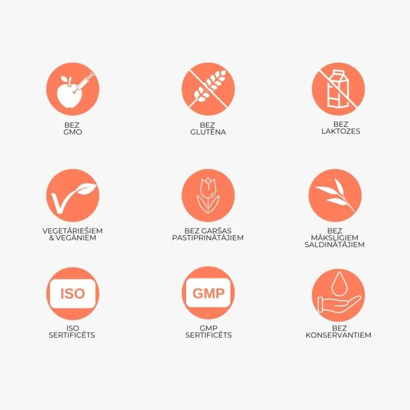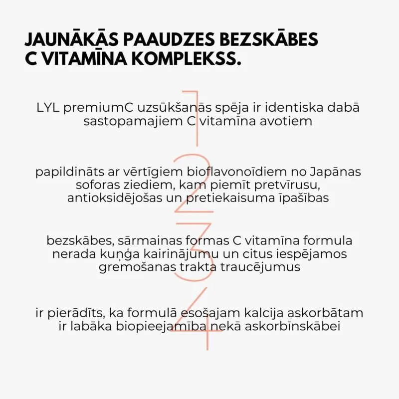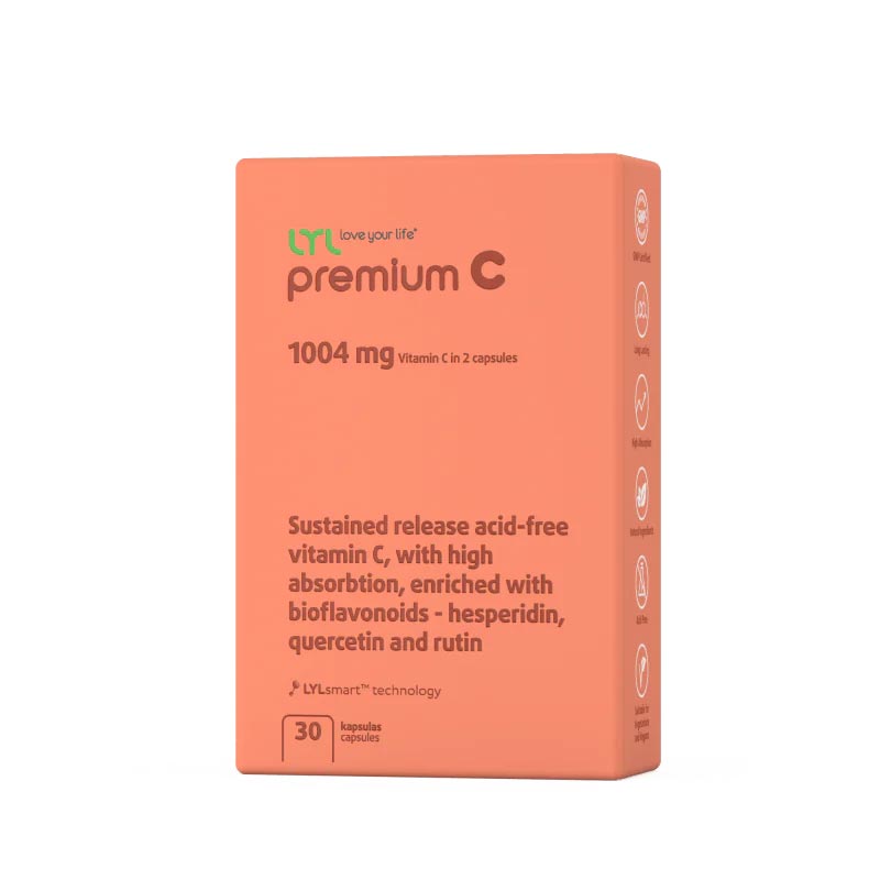 LYL premium C sastāvs papildināts ar vērtīgiem bioflavonoīdiem – kvercetīnu, rutīnu un hesperidīnu, kam piemīt pretvīrusu, antioksidējošas un pretiekaisuma īpašības.