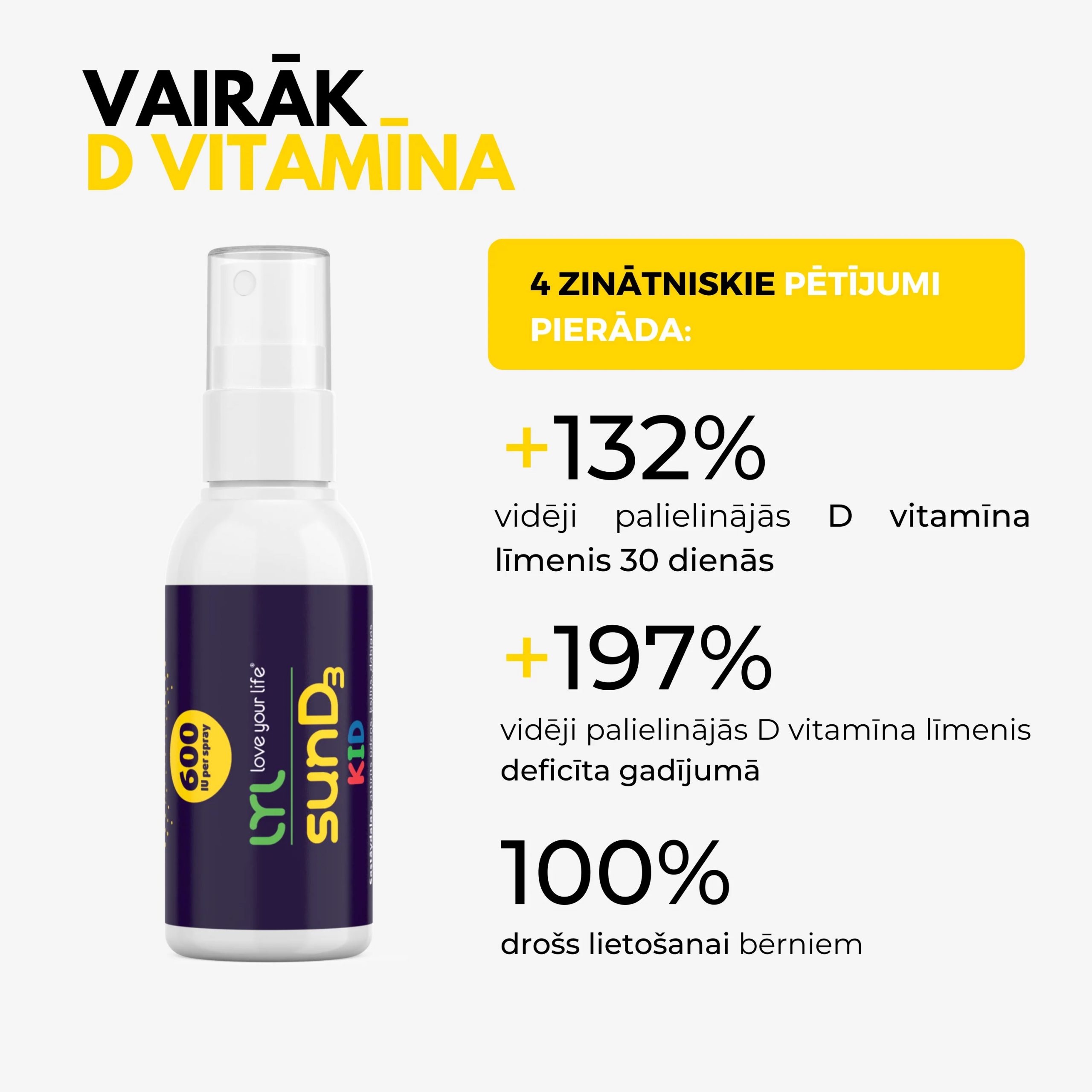 Vienkāršs, drošs un jautrs veids kā mazuļi un bērni līdz 7 gadu vecumam var uzņemt 600 SV ar vienu spreja devu.