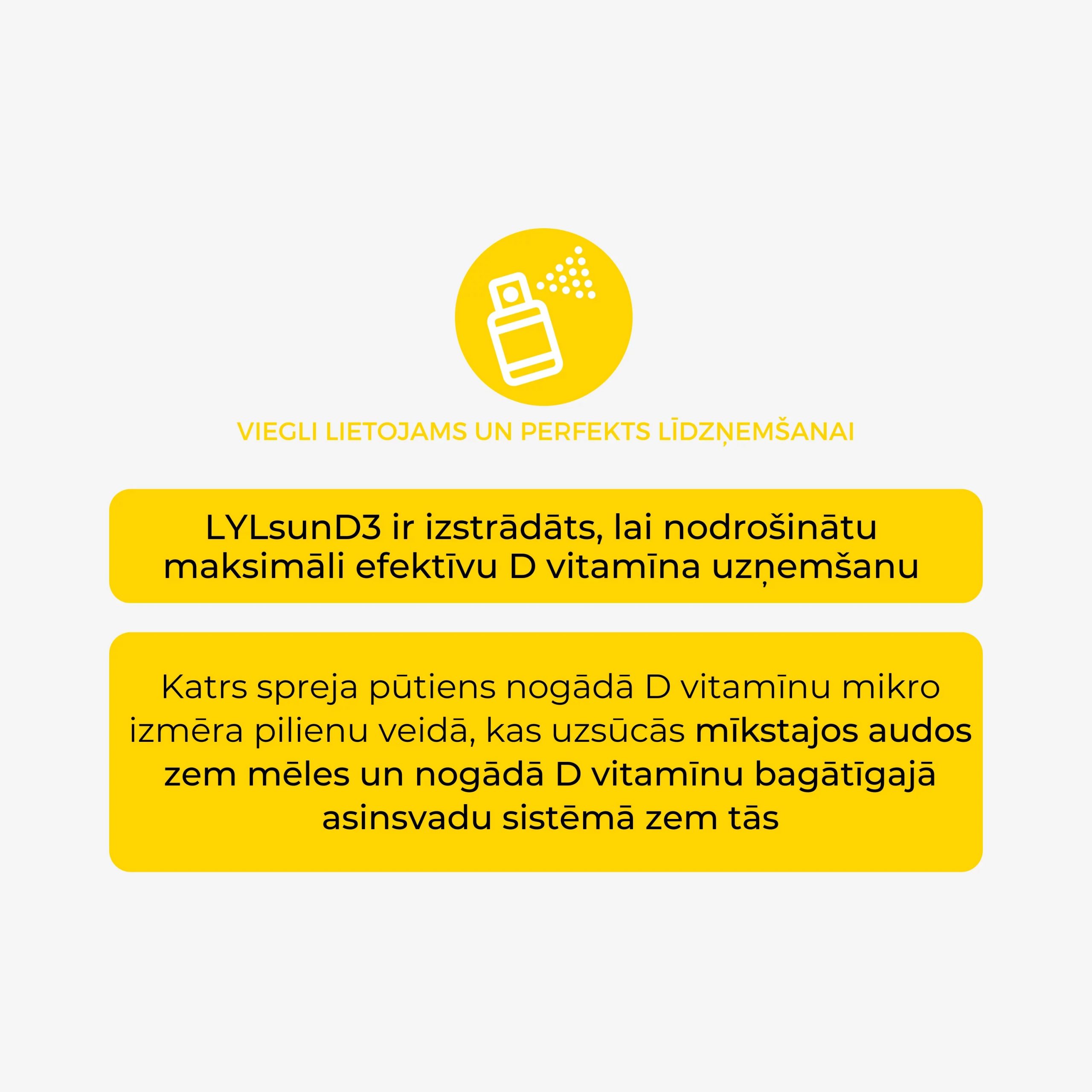 LYL sunD3 Kid D3 vitamīns izsmidzināmas mikroemulsijas spreja formā ar dabisku apelsīnu garšu.