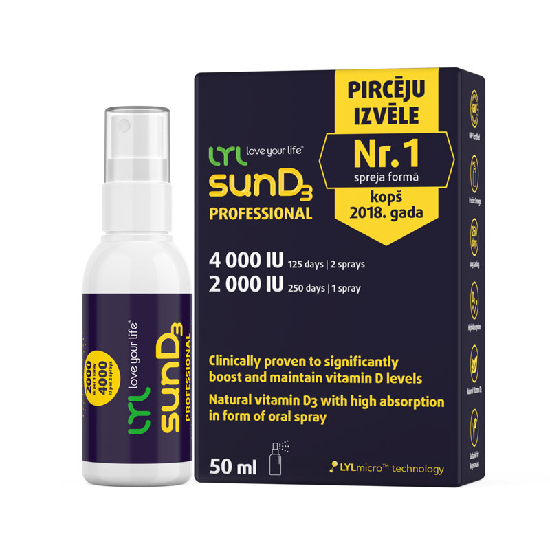 LYL sunD3 PROFESSIONAL 4000 SV | 2000 SV ir īpaši piemērots cilvēkiem, kuriem ir problēmas ar tablešu un kapsulu norīšanu, bērniem un cilvēkiem gados, sievietēm grūtniecības laikā, kuras cieš no rīta nelabumiem.