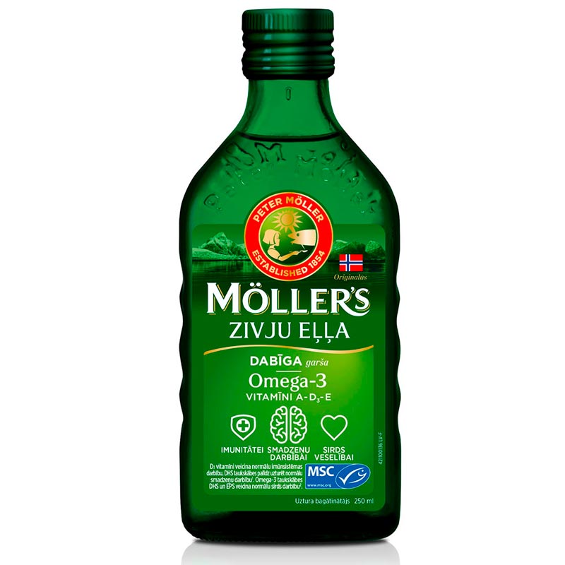 Möller’s šķidrā zivju eļļa ir tīra un dabīga mencu aknu eļļa, kura satur vērtīgās omega-3 taukskābes un dabīgos A un D vitamīnus.